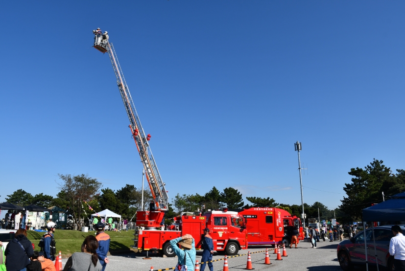 消防ひろばでは、消防車両の展示や搭乗体験、こども消防車の放水体験などを実施いたします。