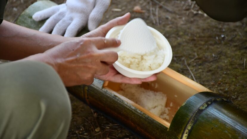 竹で炊く竹ご飯