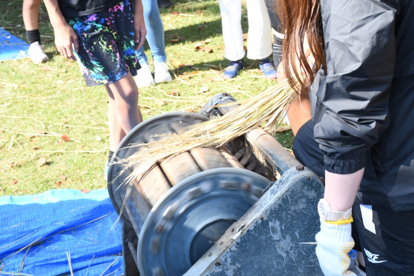 稲穂から籾を外す「脱穀」、脱穀した籾を選別する「とうみ」、選別した籾を玄米にする「籾摺り」を昔ながらの方法で体験できます。