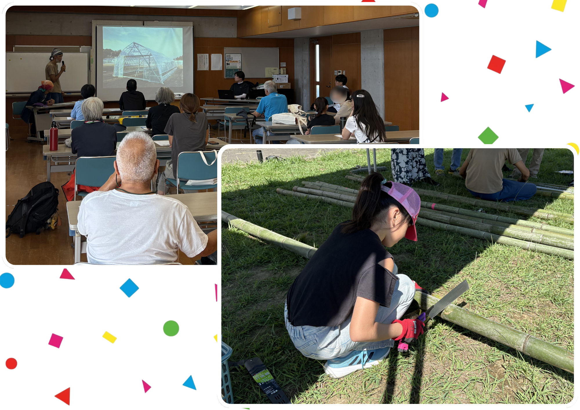 今回、初めての試みとして、木更津産の竹を使用して、講師のご指導のもと、みんなでこのステージを作り上げました。